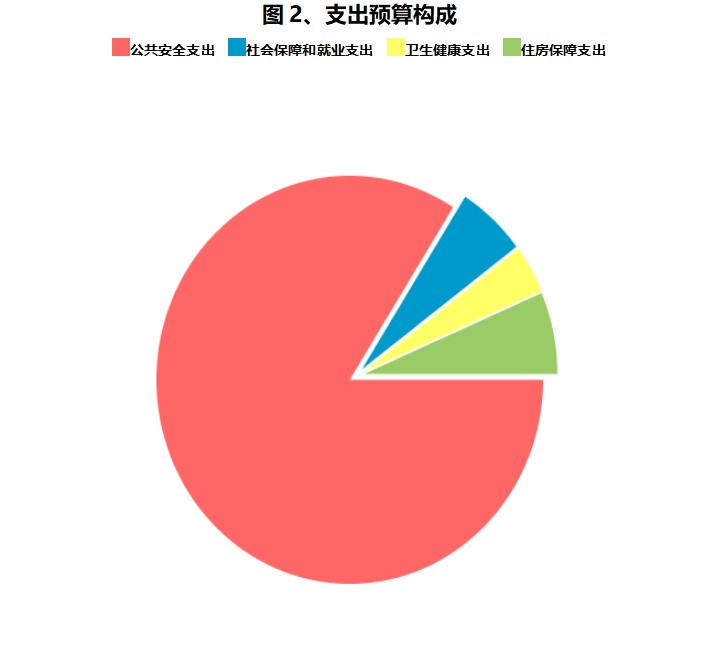 2026年一般公共预算支出2,206.79万元,包括:公共安全支出1,853.09万元、社会保障和就业支出127.32万元、卫生健康支出83.12万元、住房保障支出143.26万元。